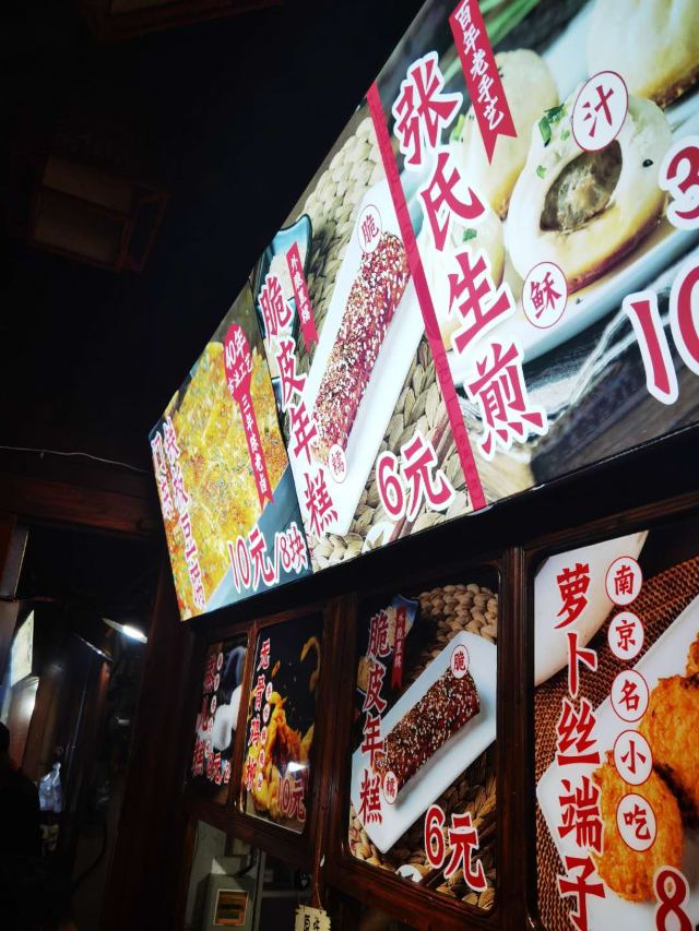 小小琪妈妈你了解南京的传统美食吗?了解南京的美食历史吗?如果答案是不,那么请来老门东逛逛,在张氏生煎打个卡,你会收获不一样的快落。 生煎是绝对不能错过的,一个铁锅,一个帅哥,烟气氤氲中,不停旋转的锅载着外酥里香的生煎就这样在你眼前,诱人的气味让人蠢蠢欲动!他家的生煎都是现场制作的,馅料拌的非常香,生煎底部很酥脆,口味超赞! 炸年糕,看似不起眼,但是确是我的最爱!外面酥酥脆脆,里面绵绵软软,好像现在的女孩子,外表再坚强,内心还是软妹子啊! 蒸儿糕绝对是南京人小时候都喜欢的零食,白白糯糯甜甜,女生们的最爱! 他家的五谷杂粮粥真是让人眼前一亮,都是机器现打的,营养丰富,健康不长胖,口感非常细腻,让人赞不绝口!