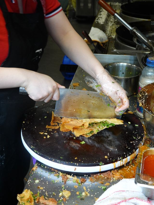 Zhangshishengjian(laomendongdian)生在南京,是一件幸运的事,从各国大餐到八大菜系,只要你想,没有吃不到的。但最吸引人的还是那琳琅满目的老味道小吃。 小鱼锅贴,并不是因为锅贴里有小鱼,而是因为锅贴上面刷的酱是鱼肉熬煮出来的!做小鱼锅贴要和面糊,圆锅烧热刷油,把面糊沿着锅边倒下去,面糊就迅速铺满了锅底,一个圆形的锅贴就能很迅速的成型了! 为了让锅贴两面焦脆,在锅贴成型的时候倒一些热油进去,让锅贴彻底浸没在油里,一遍炸一遍翻面,锅贴的面皮受热不停的鼓起泡泡,这时候就要用勺子把它压下去,让锅贴变平整!锅贴炸的两面金黄就可以出锅了,这时候就能闻到油炸的面香味! 炸好的锅贴轻轻一碰酥的掉渣,趁热给它刷上褐色的小鱼酱,一下子变成了诱人的色泽!接着还要撒一些翠绿的香菜,对折几下用刀切成小块吃着特别美味!小鱼锅贴的酱是它的灵魂,焦香酥脆的锅贴染上鱼肉的鲜香和浓郁的酱香味,这样融合在一起吃着特别美妙!