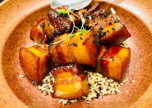 金牌普洱红烧黑猪肉,宫保深海黑虎虾丸子,黑松露文丝鲍鱼,燕窝红豆沙配香煎粉丝包,奶白菜煮手打墨鱼丸子,奥灶面