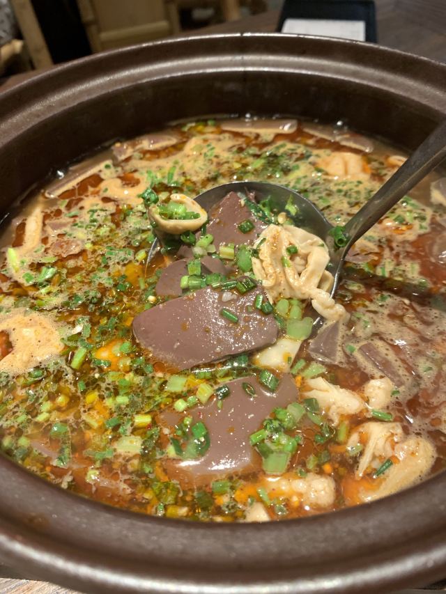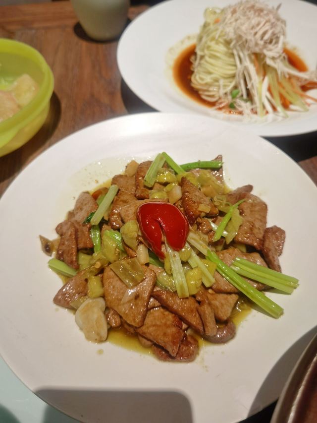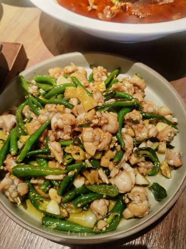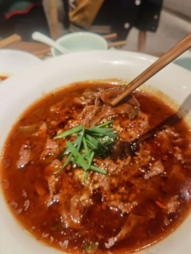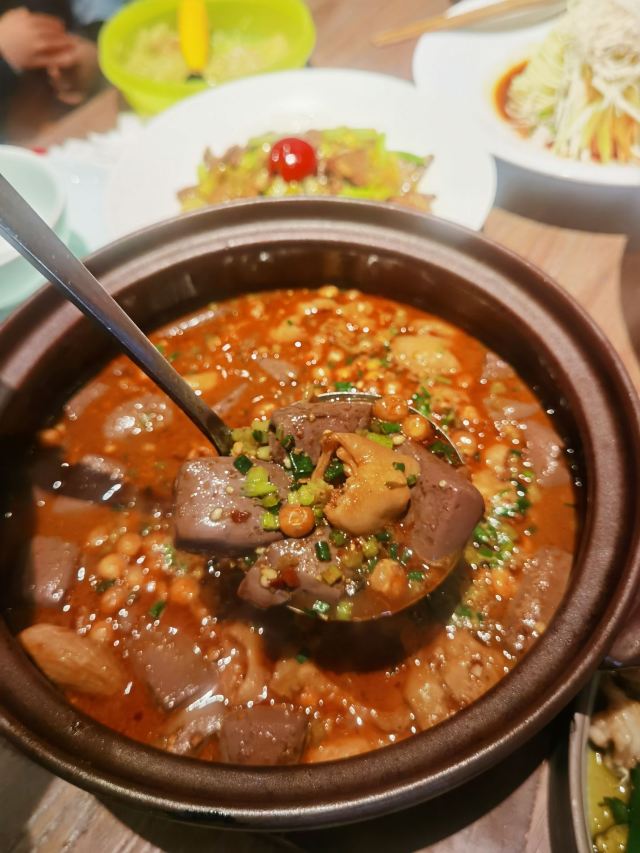 巷子里无法停,车可以停金轮或金鹰。 有设计感观之舒适的馆子,灯光高级,竹椅有范儿,但不适合饭店,更适合茶馆。 服务蛮好,上菜很快,店员亲切勤快。 菜的口味如店中所言,不止麻辣,有鲜香咸甜,相当赞。 招牌菜基本全点了。 肥肠血旺、牛蛙、猪肝、水煮牛肉、炒饭,推荐。 除了血旺、牛肉比较辣,其它菜的辣度都不算厉害。 值得二刷的店。