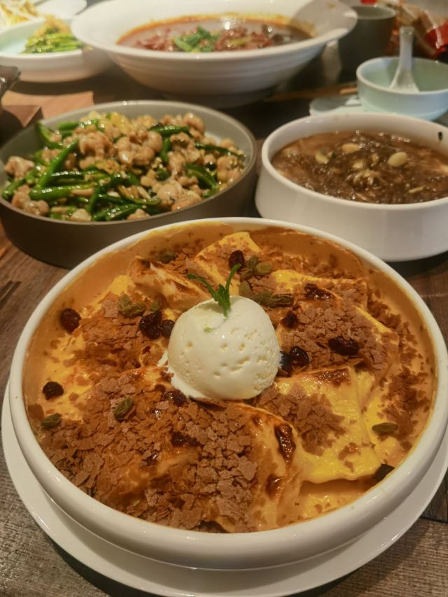 冰川茄子,十八秒猪肝,歌乐山辣子鸡,宫爆虾球,尖叫蛙,辣子鸡,酒酿豆花,和牛麻婆豆腐,鲜切水煮黄牛肉,牛肉萃饭