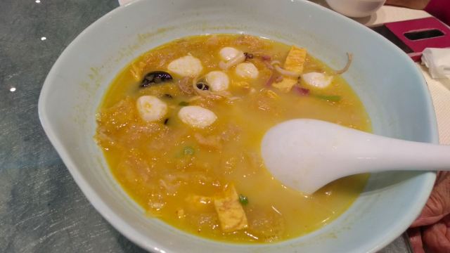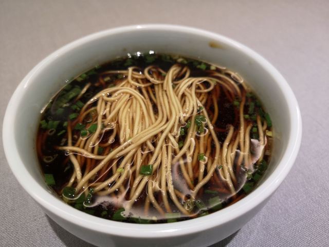 小笨熊2018【环境】 位于新街口金鹰对面的友谊广场楼上,从友谊广场波司登大门进去上扶梯,中间几层是学习机构之类,看着比较萧条,到了狮王府那层,装修环境还可以,对面是大牌档。大厅堂吃比较简单。 【服务】 服务很好很耐心,晚餐餐点没有等位,新街口有一些店口味也就那样,但排队都是半小时起,这个体验感好多了。 【口味】 |老鸡汤馄饨^十元,应该是鸡汤吧,汤头清但很鲜美,小馄饨也好吃。 |招牌阳春面^十元,这个也是招牌,面条劲道,汤咸淡正好,应该放了点猪油,非常香。 |千盐水乳鸽(半只)^36半只,目前有打折,29元吧,端上来还是热的,卤的很到位,一点也不柴,咬下去还有汁水,好吃。 |素烧鹅^二十几元,豆腐皮很嫩,卤汁多。 |大汤手工鱼圆^有一大碗也可以按客点,一盅有一个鱼圆一块豆腐,鱼汤鲜美,回口有一点胡椒淡淡的,估计是去腥的,很香。