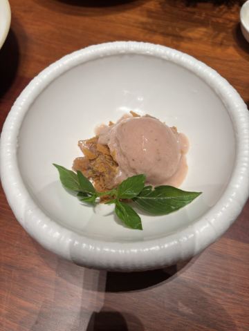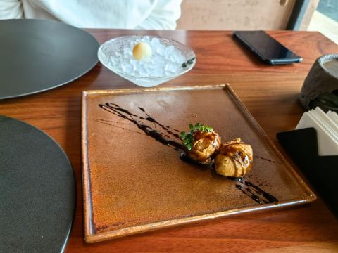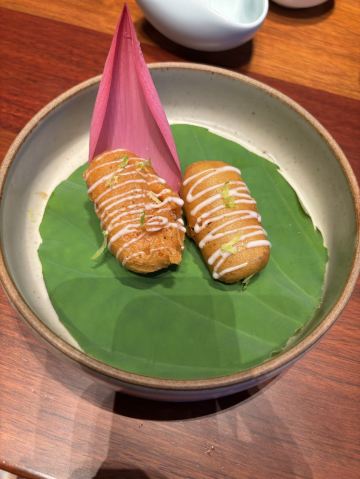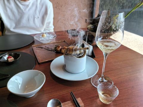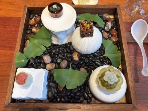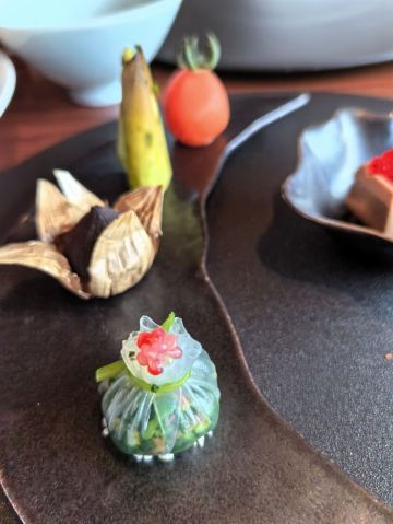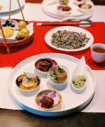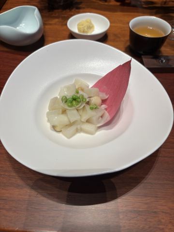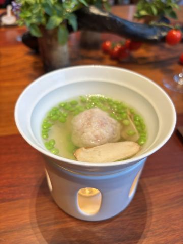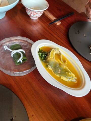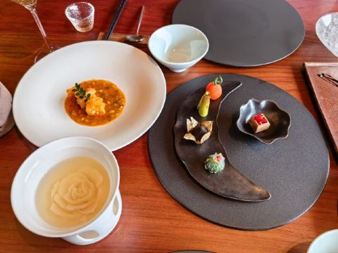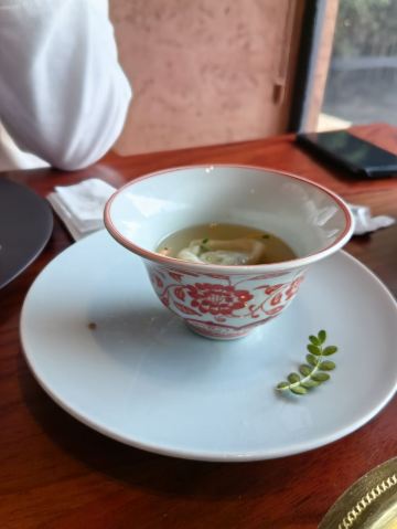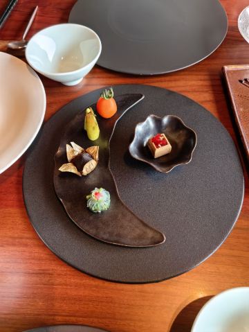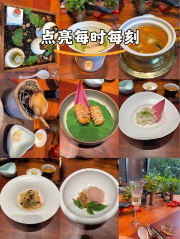 【口味】有中式怀石+官府菜的感觉,家人吃了都说值得和腹饱满足。前菜口感设计很有层次感,常规金陵盐水鸭选鸭脯,绵密豆泥糕,鹅肝分子配泡萝卜蔬菜卷综合。汤品值得推荐选用散翅碎鱼头香芋碎块现今迎合年轻人的金汤口味。淮阳不得不说的刀工,常规豆腐菊花,今天呈现玫瑰的层层花瓣。 【环境】见图,室内移步换景呈现禅意中式,室外建筑东方简约包围在自然山景湖色中。 【服务】欢迎无气泡酒,开胃清口,温度再低一些呈现度更佳。