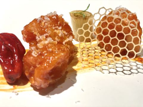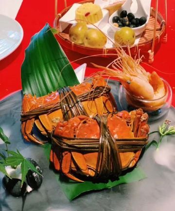火山岩雪花牛排,花雕酒醉大闸蟹,中式酱汁小牛肉,淮扬拆烩鱼脸烩鱼胶,原味椰汁炖官燕,经典淮猪狮子头