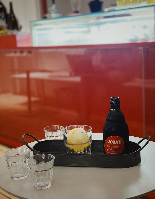 雨夜来的UNIUNI,之前憨吉就叨叨好几次说好。走上露台上就喜欢上了,白色阳伞红色主题,若是晴朗好天气,是一股清新透彻~ 挑了赛豆:哈特曼秘密花园,美式在口腔里丰富有内涵,奶咖用的eisbock,听到我们觉得奶味稍微过于凸显,咖啡师小哥哥又调整了参数做了2杯,超级nice且谦逊。 室内的吧台空间舒服,还有咖啡调酒可以给周六的夜晚添一点酒精,喝上一杯再美美的离开。