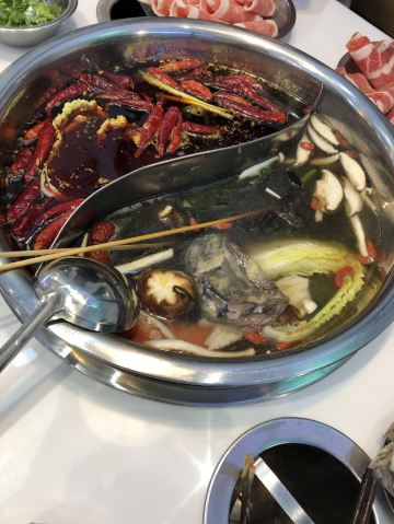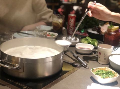 这是一家人气很旺的火锅店,店内的胡椒猪肚鸡是特色,据说汤底是经过8小时大火熬制的,色泽奶白,汤底鲜香,涮菜前不妨先舀上一碗品尝一下。爆浆手打虾丸,个头大,弹性十足,其中还有芝士夹心,到店必点。