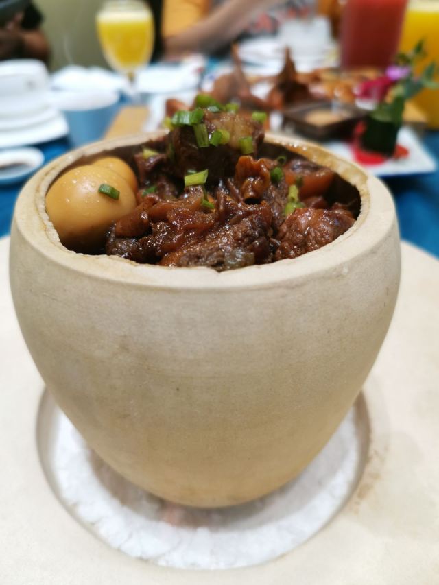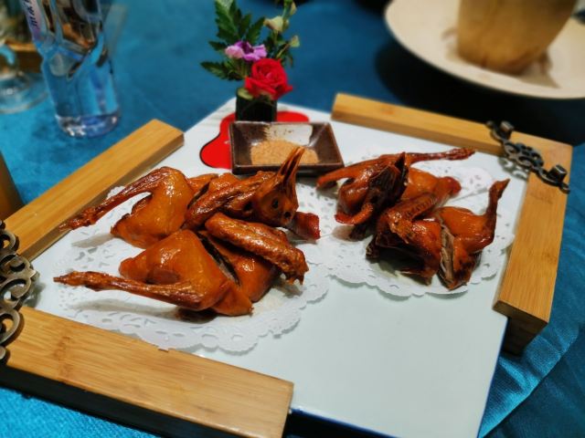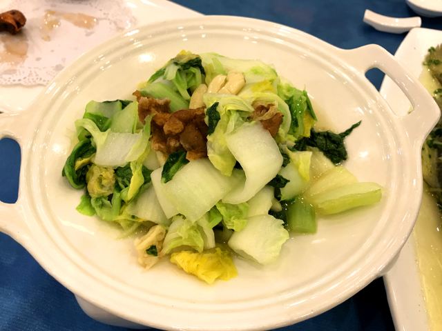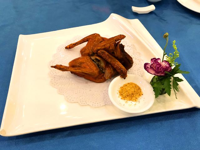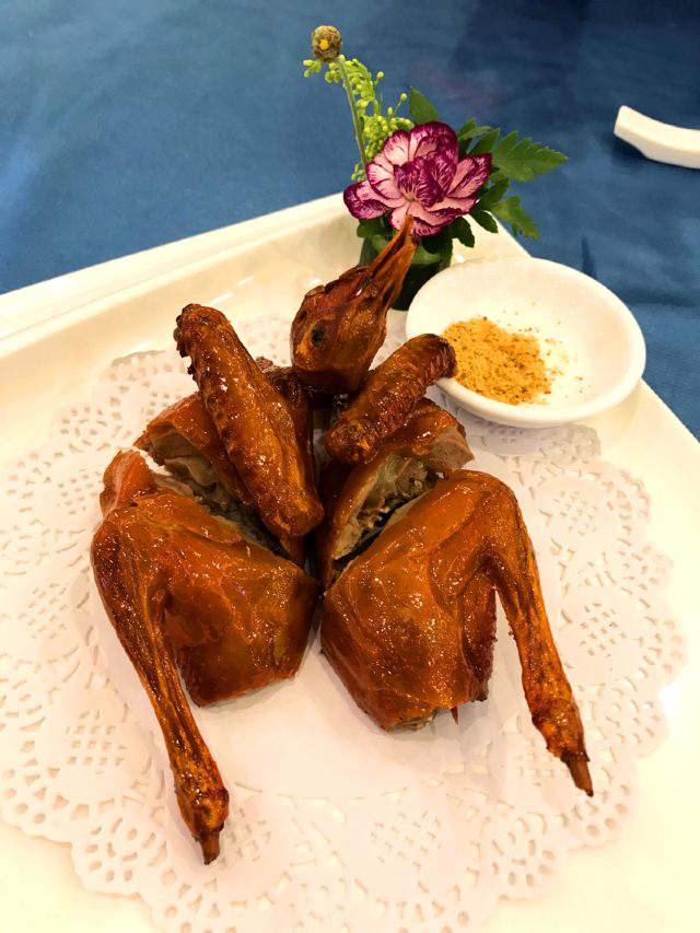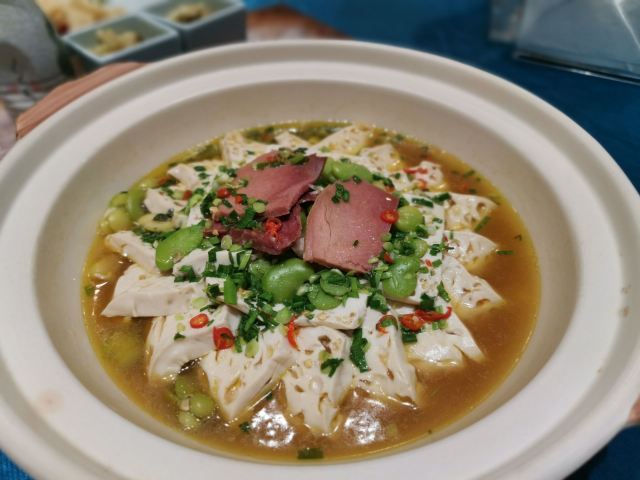 姜葱花蛤:32元,很清爽,口味炒得也很好,鲜香好味。 鸡汁蒸黄鱼:78元,端上来真是让人大跌眼镜呀,如果这条鱼实价卖78元我是肯定不会点的,价格实在有些虚高了,正常饭店里卖30-35元差不多,又细又小,口味只能说正常,谈不上惊艳。 养生豆腐:59元,这个菜比较好吃,蜂窝状的豆腐炖得时间刚刚好,汤也很鲜美,就拿这个泡饭了。 脆皮乳鸽:42元,个头小得可以,建议商家换个小些的盘子,这样不至于看着很难看,皮没有吃出脆的口感,咸度可以,有轻微饲料味,一般吧。 青菜炒油渣:36元,真的我最后想说一下商家的价格真的有点虚高了,如果真是这个价格,我想我是绝对不会再来第二次的,因为先不谈口味,光这个菜的品质和份量都对不起这个价格。 总结:服务的阿姨特别的好,一直很和气,用餐时间整个大厅很空旷,建议商家调整实惠的价格,不能因为价格低就把菜的品质和份量减下去,这样生意会越来越淡的。