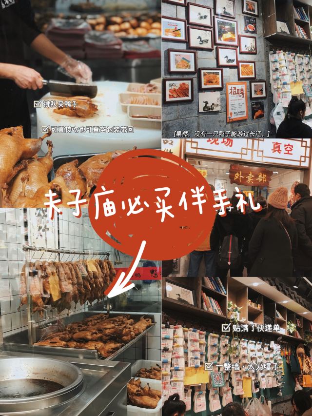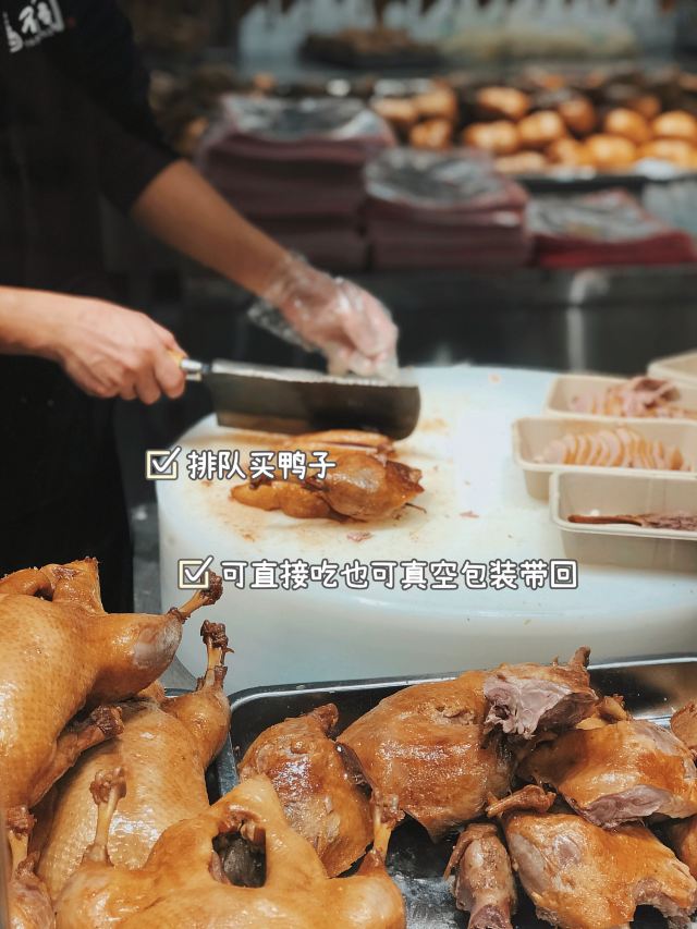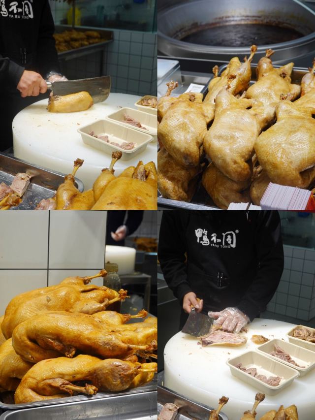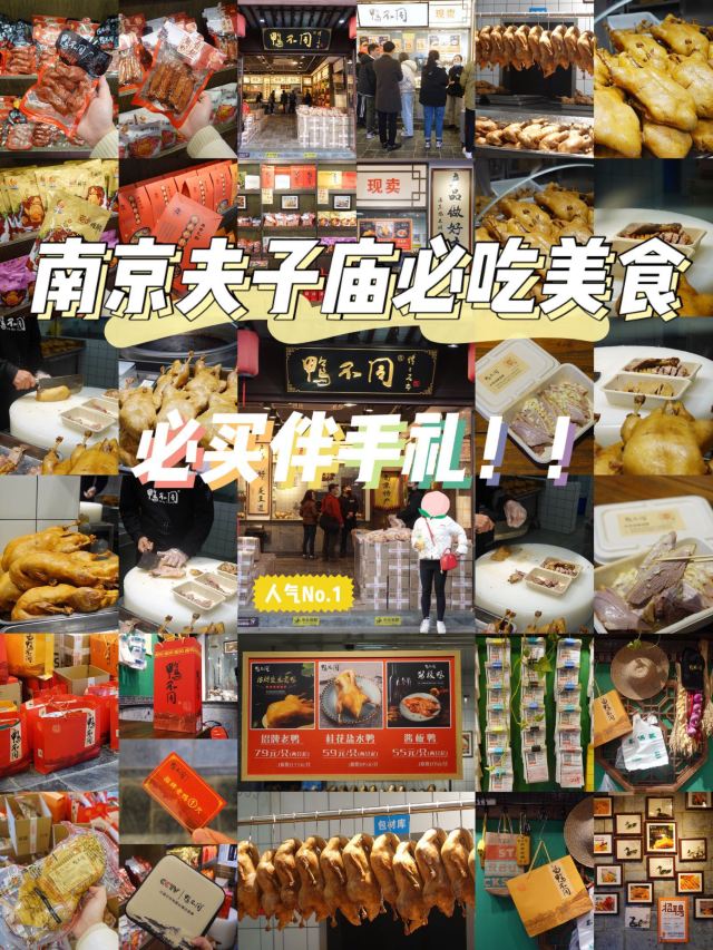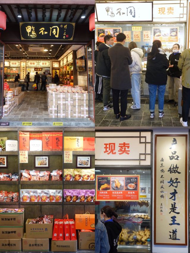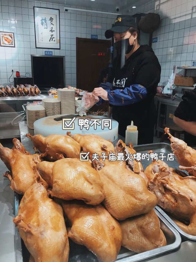 谷春先夫子庙必吃美食💥伴手礼必买🦆盐水鸭!! 三天不吃鸭,走路要打滑!🦆 要论做鸭,最厉害的还是南京!鸭都,南京第一! 在南京没有一只能活着游出去!来夫子庙,怎么能不买鸭子! 鸭不同盐水鸭,中国地理标志产品,CCTV推荐品牌!不仅游客会买,当地人都会购买! 店内不仅售卖鸭子,还是售卖各种鸭部分的零食,鸭翅、鸭肫......连鸭血粉丝汤都有! 鸭界F4,招牌老鸭、桂花盐水鸭、酱板鸭、风味盐水鸭! 强烈安利招牌老鸭,用的是老卤,现卤现卖,外白里红,肥嫩鲜香! 现剁现卖,刀刀见香,放入蒜泥淋上麻油,入口滋味万千,口感咸鲜,清淡不油腻! 只要15元一份,一整只要79元一只! 购买前,店员会主动提供试吃,热情介绍,购买的人无敌多,六点钟的时候人多到炸! 购买一整只老鸭寄到上海,店员会免费帮忙抽真空,江浙沪第二天早上就到了! 墙上的快递单号说明了一切!有多受欢迎!过年年货必囤! 🏠店名:鸭不同(贡院街店) ➡️地址:贡院街168号(夫子庙步行街内) 🚇交通:地铁3号线夫子庙站2号口步行610m ⌚️时间:09:00-22:00 💰人均:80元