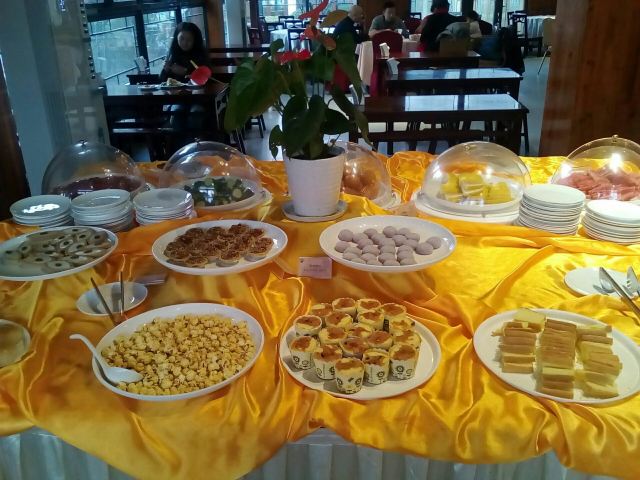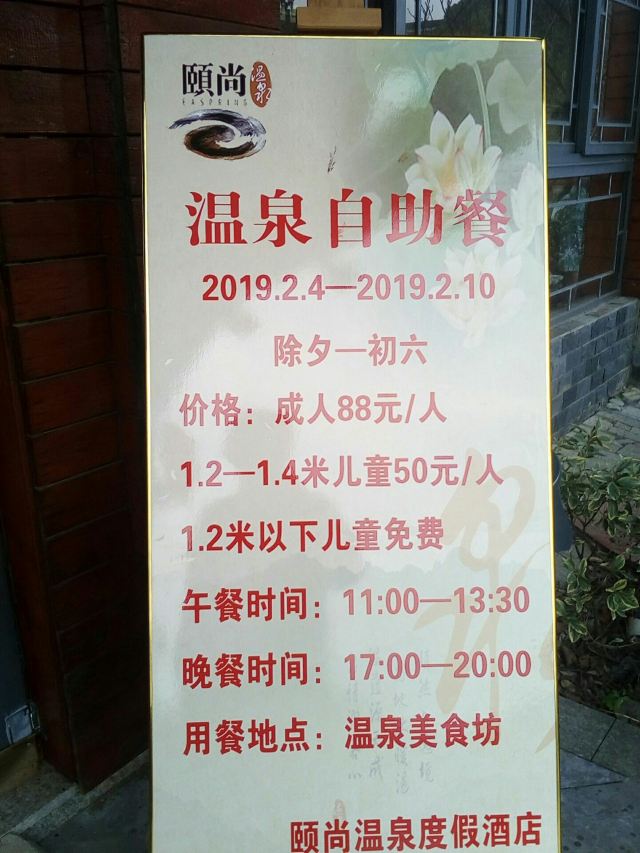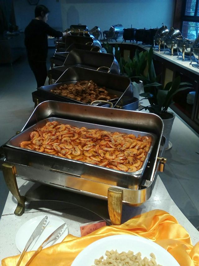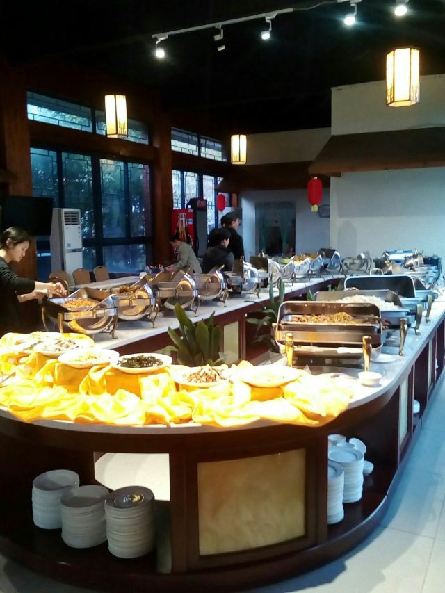 黄金周去的,餐厅就在温泉区内,宽敞整洁,提供的自助餐(88元一位)还是比较丰盛的,菜肴种类很多,肉类、海鲜、蔬菜水果、糕点饮料都有,味道还行,性价比不错。