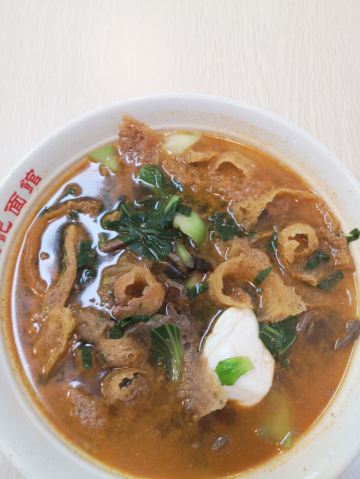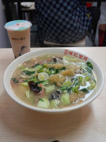 点了皮肚香肠面,全家福面,里面啥都有,肚子,皮肚,香肠,份量大,碗真的很大,面条感觉硬了点,不过还是全部吃掉了,吃的是回忆吧。