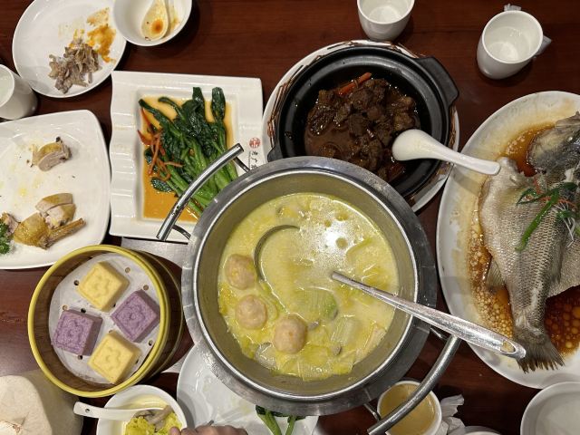 达肥晚上在老广东吃了个138元的套餐,真喜欢这样的餐厅,全国疫情,大家都不敢出门,它正常开放;南京禄口疫情,好多餐厅拒绝堂食,它正常开放;全南京阳性爆发,依旧正常开放;春节好多餐厅休息,它还是正常开放。而且这些正常开放都是伴随大厅可以用团餐的开放。今天晚上去的时候,包间很忙碌,他家一个个像蒙古包那样的玻璃房子包间很好看。大厅没什么人,基本都是吃团餐的。团餐也不含糊,一个服务员为包间忙碌。厕所干干净净。 138元的套餐,有新鲜鲈鱼,有鲜甜的娃娃菜菌菇汤,还有扎实的牛筋腩,这样的餐厅,没什么好评论的啊,吃就是了。另外,要好好感谢一下老广东,南京全城阳性爆发,街上、商场人很少的时候,依旧正常开放,我们家好几次喊跑腿去买了酸汤鱼,以唤醒没有味觉的小洋人食欲,老广东都是现做热乎的交给跑腿,太感谢了啊!