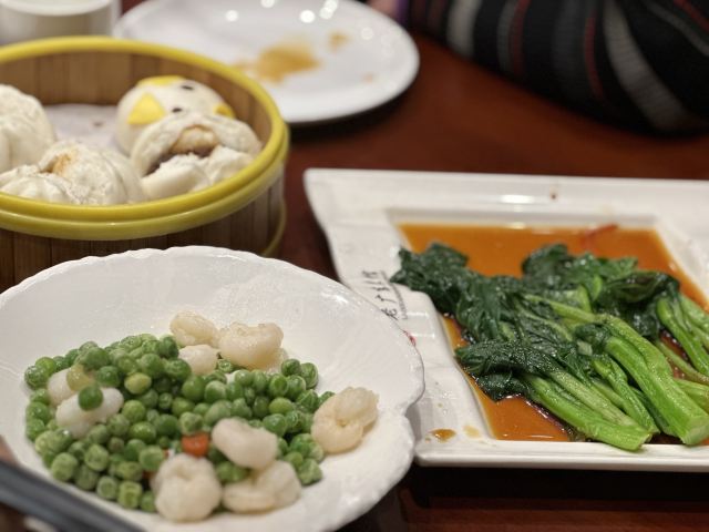 老广东虾饺皇,麦香荔浦芋条,脆皮乳鸽,脆皮鸡,深井烧鹅 1例,锦绣烧味大拼盘,云吞一锅鲜,铁板鲍汁豆腐,头抽清蒸活鲈鱼,炒牛河,大良炒鲜奶,烤鸭,上汤西洋菜,烧味三拼,厨神豆腐,夫妻肺片,烧鹅,虾饺皇,烧乳鸽,台山黄鳝饭,叉烧三拼,炒饭