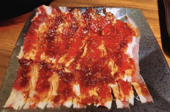 谷春先新街口烧肉界的扛把子,排对3小时才吃上 一年未见不见,泥炉烧肉师,成为了网红店,门口大排长龙。 专业炭火烤炉,纯正炭火烤肉,口感更加。重点是,在这里烤肉,一点都不担心身上有油烟味。 自酿玉米米酒,酒精度数很低,入口顺滑醇厚。 ️卤蟹钳,陈醋菠菜花生,花生香脆,菠菜爽脆。 椒盐草虾,去了虾壳的虾仁食用更方便,更入味,甜美。 墨鱼香肠,入口就是一个暴击,满嘴的Q弹,还哔出汁。 牛肋条,色泽红润,可以清晰看到上面的纹理,细嫩多汁。 秘制肥牛,肉的品质很棒,油滋滋美滋滋。 特色烤鳗鱼,疯狂打call,一只烤鳗鱼直接开烤,鳗鱼尾巴还在动。 鱼皮软软QQ,每一块酥脆的又弹又糯,味道好极了。 牛肉海带汤,海带软绵,肉很香,味道鲜美,连喝了三碗。 荞麦冷面,汤清亮酸甜可口,面条软硬适中,十分筋道,芝麻粒更是令其增色不少,口感更有层次。 烤菠萝,带着温度的菠萝,酸酸甜甜。 冰鲜草莓,红彤彤,一整颗草莓,冰凉解腻。 烤糯米年糕,看着一个个小年糕膨胀起来,酥松可口不粘牙。 店名:泥炉烧肉师 地址:金銮巷2号(第三高级中学对面) 人均:100元左右