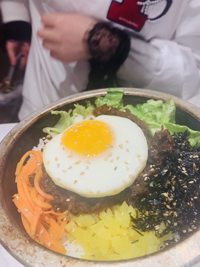 和花津浦烤肉是一个老板。花味更年轻简洁一些。这次时间有些赶,就吃个二人石锅拌饭套餐。牛肉的是烤肉酱拌的,蔬菜的是韩式辣酱拌的。都挺好,南瓜粥还是那个味,好喝