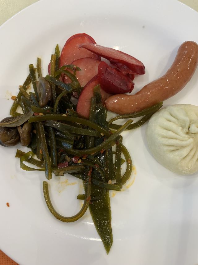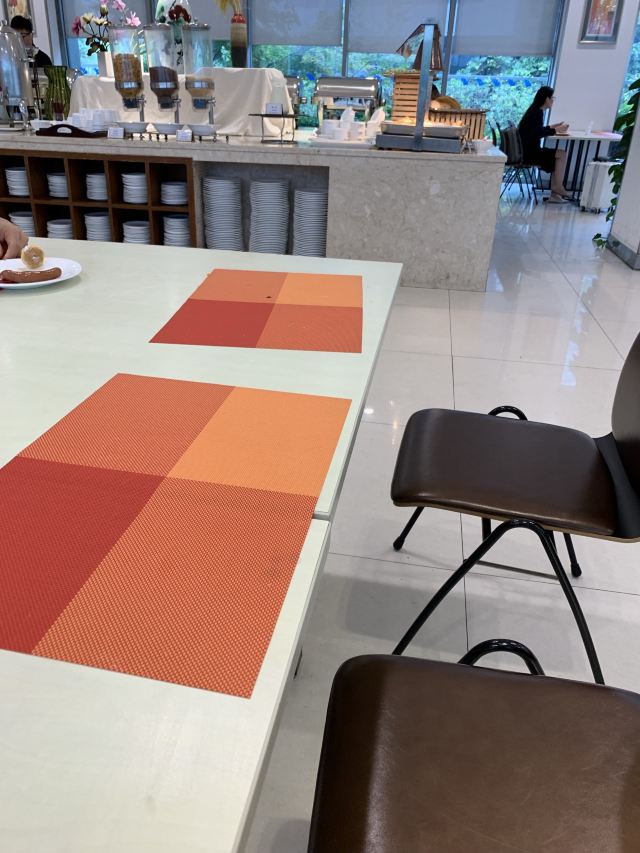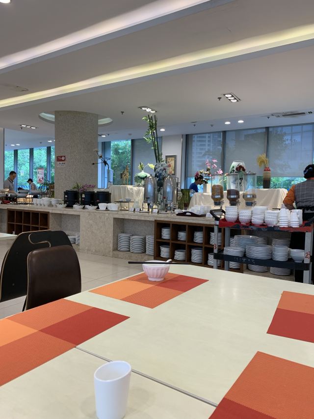 南京国际博览中心酒店的餐饮还是不错的,早餐是在一楼的江滨厅,这个厅面积蛮大的,可容纳约300余人同时用餐,餐厅里还是较为整齐、卫生的。早餐时间是7:00——9:30。这里早餐的品种蛮丰富的,除了些常规品种外,还有些南京地方特色的,如鸭血粉丝汤、小馄饨之类的。还有煎饼口味也不错的。