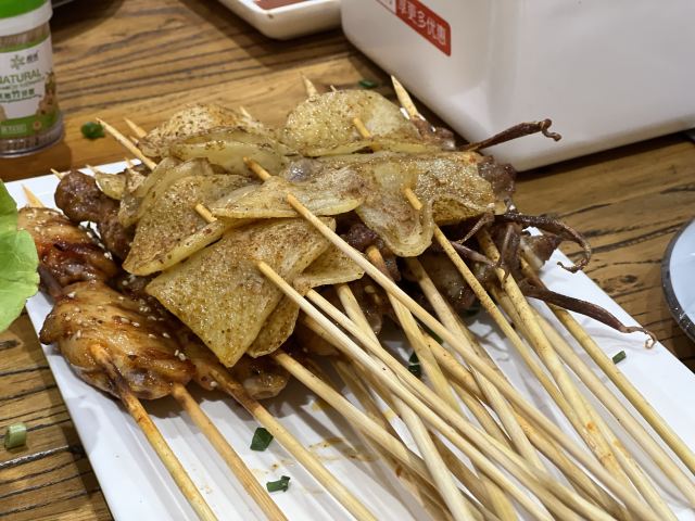 位于老浦口1914街区,人气蛮旺的一家店,晚上有户外大棚房。 「烤羊排」肉质细嫩鲜美,完全没有羊膻味儿,店里可以帮忙切,蘸上孜然粉辣椒面儿,非常美味。 「炭烤牛板筋」板筋很厚,味道很棒。 这家的烧烤和龙虾味道不错,值得再来。