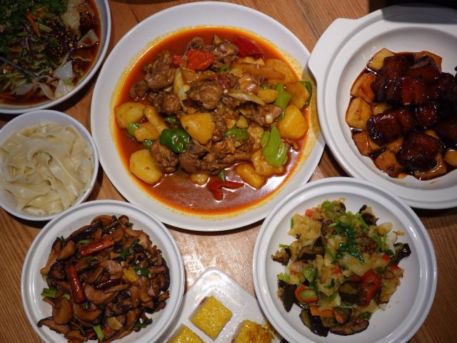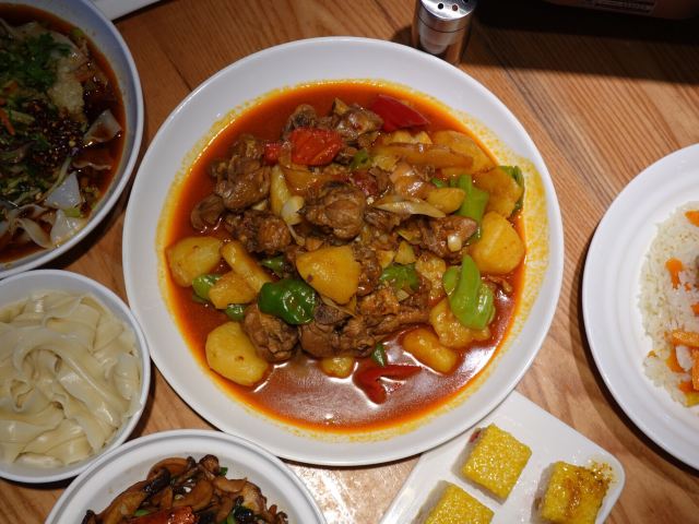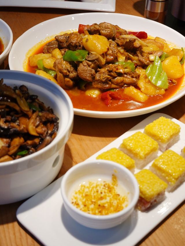 谷春先晋家门,超人气的西北菜。 晋家门南京各大商场都有门店,经济实惠,不容易出错。 西北菜不辣,适合家庭聚餐。最近新菜上市,当然要来拔草! 沙棘汁,维C之王,酸爽开胃;小米凉糕,带着桂花香,香甜软糯。 牛大骨爆款新品,在店门头挑选的,分量超级足,有筋有肉有骨髓,香。 红烧肉烧慈城年糕,宁波慈城年糕,江浙沪一带著名小吃。 慈城年糕,洁白如玉、糯软有筋道,红烧肉肥而不腻,咸中带甜。 大盘鸡,鸡肉爽滑麻辣,土豆软糯入味,连汤汁都被舔光了! 橄榄油炒三种蘑菇,菌菇爱好者的最爱,橄榄油炒制的很清爽。 蘑菇汤莜面鱼鱼,蘑菇汤香浓可口,莜面鱼鱼手工搓出,更有嚼劲。 晋家门手抓饭,羊排香嫩,胡萝卜软糯,米饭粒粒分明,一份不过瘾。