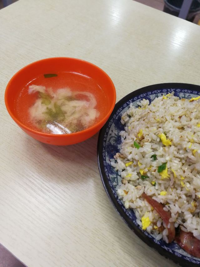 炒饭12元,基本上算是蛋炒饭吧,有3片香肠。炒饭的米粒做到了粒粒分开,口感正合适,不咸不淡。只是老板端汤的时候,手指头伸进汤里了[色]。当时正是晚间新闻联播的时间,新闻回顾了中国卫星发展历程,说明中国自主研发的力量从建国伊始就在积累并卓尔不凡,而今美国指控中国技术都是买的是与事实不符的,中国已经做好准备应对美国新一轮的贸易壁垒了,我们不怕!