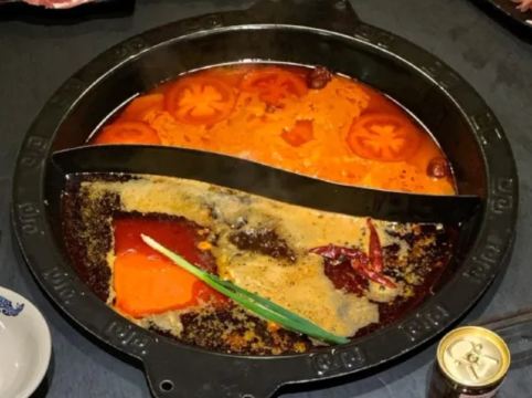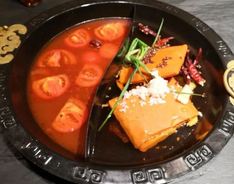 距离地铁2号线云锦路站不远,出门走几百米即可。进门就有一种到重庆吃火锅的感觉,很街头很市井。十九堂浓香番茄鸳鸯锅,牛油锅煮开以后很香