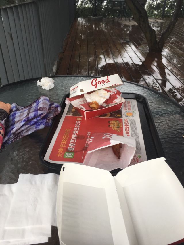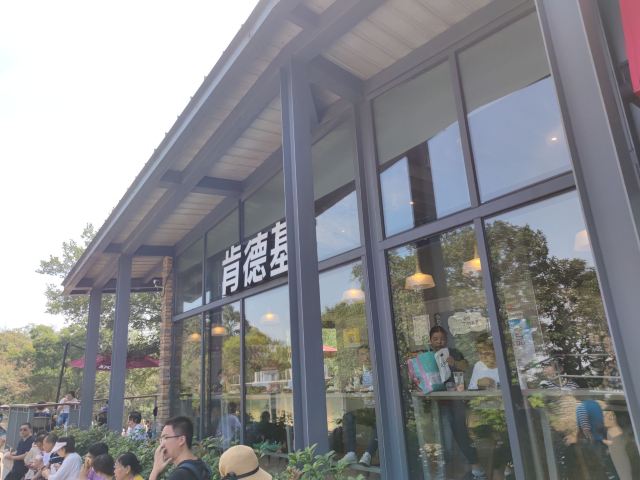 肯德基(头陀岭景区店)位于南京的最高峰紫金山的头陀岭景区内。南京人喜欢登紫金山,每天来这里的人挺多的,这里也是紫金山索道的山顶站,有不少人是坐缆车上来的。在山上这边能选择的餐饮较少,而登山以是蛮耗费体力的。因而在这家肯德基就餐的特别多。不过这家肯德基有些套餐是不能用的。由于是山顶,这里风光不错,可以在室外用餐。