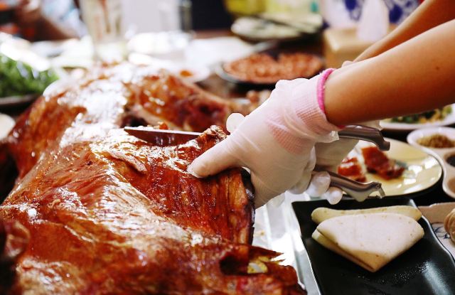 踏破铁鞋无觅处 得来全不费工夫 藏在深山老林中的野味美馔 有缘一睹芳容 有寺庙之禅意 有私人宅邸之静谧 可远观葱绿美景可近听叽喳鸟鸣 动静之中享自然恩赐 收获别样周末 汪曾祺曾这样写过:羊大为美,中国人吃羊肉的历史大概和这个民族的历史同样久远。中国羊肉的吃法很多,我以为最好吃的是手把羊肉!其中又以内蒙最好!因为那里的羊肉不膻。 烤全羊,气势上就颇有不同,人越多吃起来就越香!除了羊肉本身食材要非常优越,烤制手法也不容忽视!当一整只羊被几位彪形大汉抬于桌上,随之而来的是情不自禁的赞叹和对美味的无限憧憬! 外皮被烤的红彤彤,油滋滋,当刀刃切下,露出里面白嫩而又细腻的羊肉,食客恐怕早已无心其他,就等着这口美味入瓮了! 秋冬季节吃羊肉最为滋补,不如和家人和朋友驱车前来,品品这霸气的烤全羊,酒足饭饱后才知人生最珍贵的就在于美食投喂后的满足与幸福! 【大福来烤全羊】浦口区采石路响堂46号