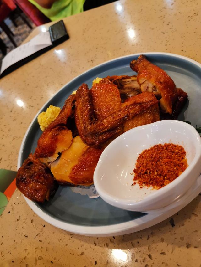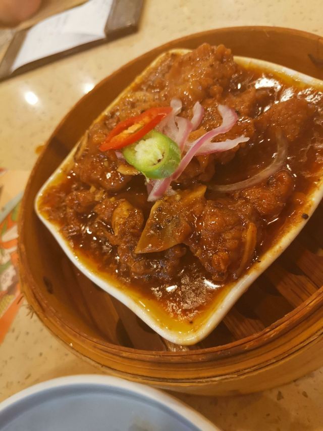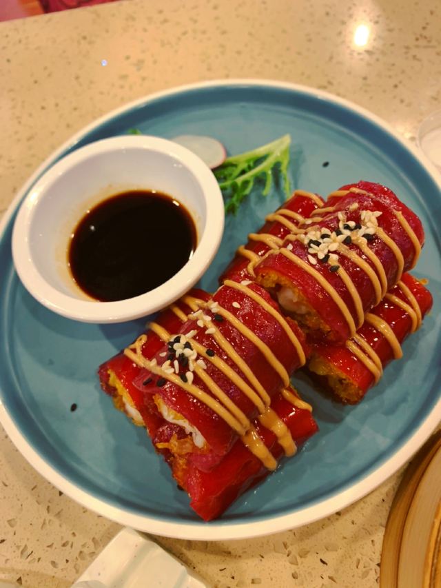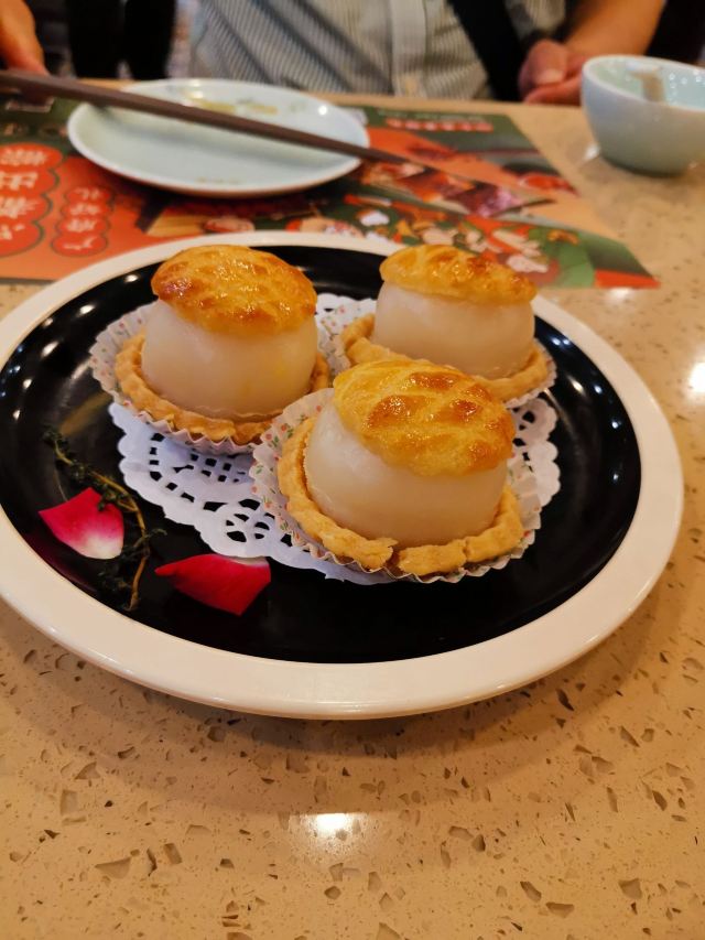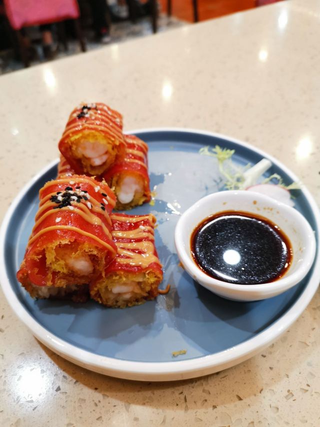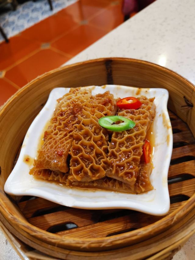 金莎海虾红粉米肠—鲜,金牌虾饺皇,蒸凤爪,荔湾艇仔粥,特色蒸排骨,乳鸽,沙爹蒸金钱肚,豉油皇三丝炒面,蟹籽烧麦,菠萝包
