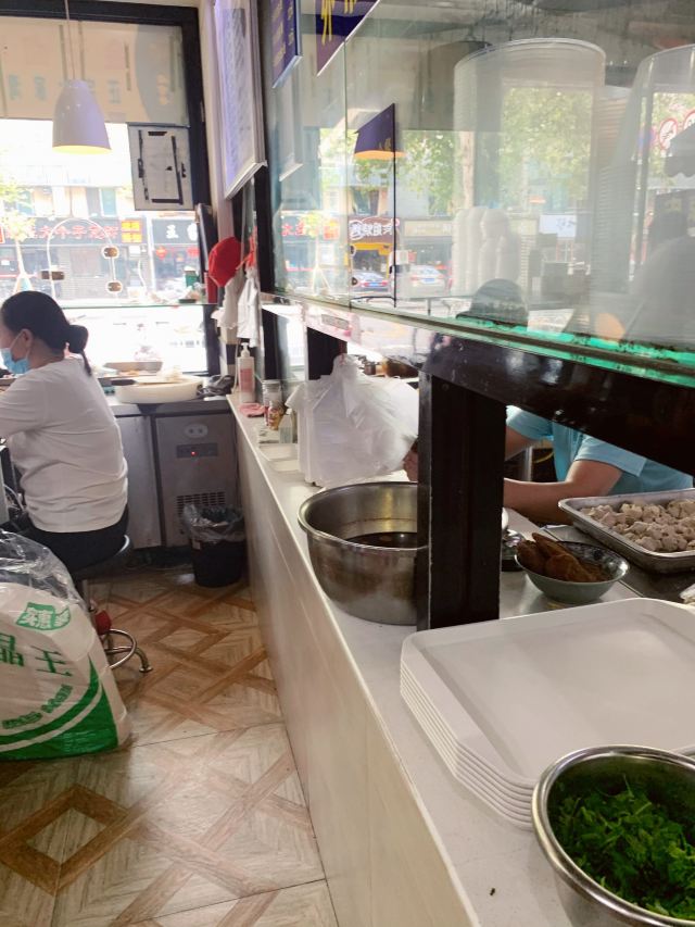 餐厅宽敞整洁,门口还挂着新鲜的牛肉羊肉,可以现切现卖,品质放心。招牌牛肉锅贴,外形金黄,酥脆焦香,一口下去满满的汁水。