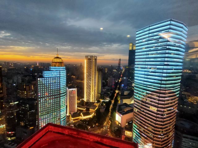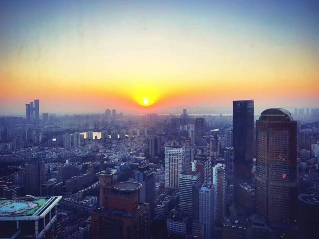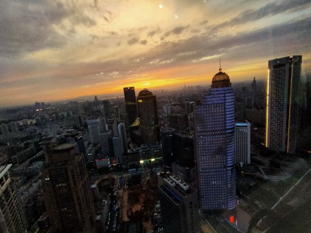 TUNZHONGLAO高空的景色非常的美。餐厅在50几层楼是个旋转餐厅。在其中可以俯瞰整个南京市的事情非常的美丽,非常的壮观。配上落日的余晖,简直是美爆了。大爱南京。