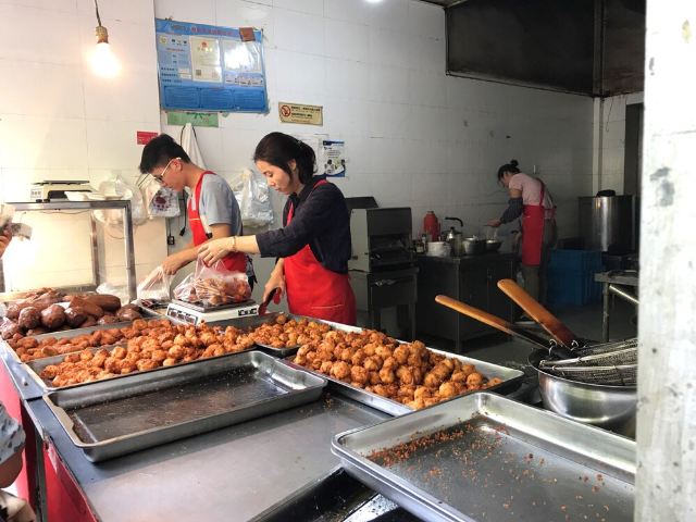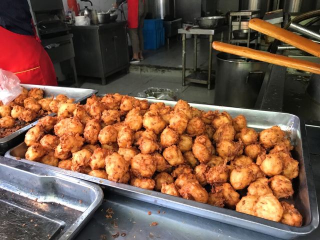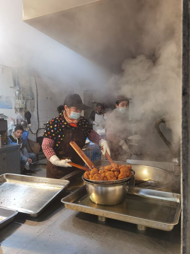招牌“扒鸡”,别看扒鸡小小只,能撕出一整盘,吃起来直接上手撕,真是别提有多爽了!来陶记只买扒鸡真的就太外行了,懂行的都知道,他家的藕饼才是南京的top1。人群中大多是老客,有住在附近的,也有从别的片区特意赶来。