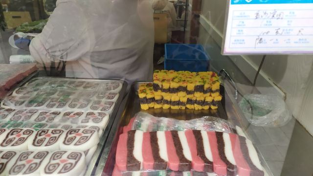 这家店的环境像国营老店,服务一般,但是经常排队,不少去夫子庙游玩的游客会把它当作必吃餐厅之一。它以糕团甜点出名,部分甜点外观美貌,自己吃或送亲朋好友皆宜。马蹄糕的截面有可爱的圈圈纹案,三色糕颜值满分,软糯香甜又很浓稠的赤豆小元宵点单率最高,牛肉锅贴适合想吃肉的食客。