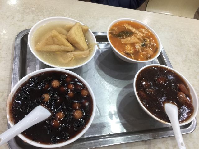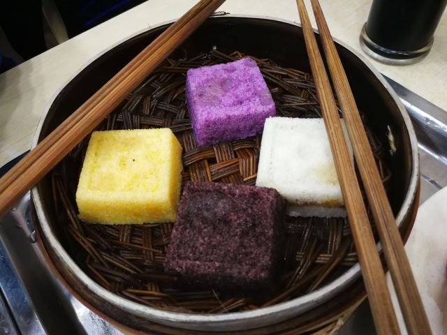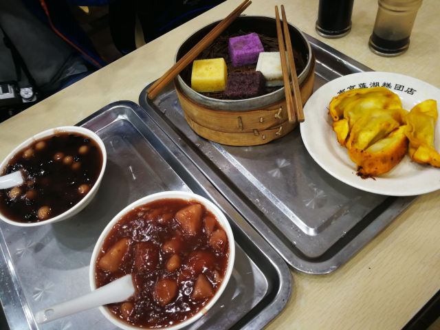 爱旅行的猪仔据说这里有好几样南京出名的小吃,而且只此一家,就在夫子庙地区。 逛街逛累了正好来这里医肚。 【环境】快餐店的装修,地方不大。不过供应的品种挺多,除了招牌的各式糕团外,还有锅贴、包子、元宵、馄饨、米线和面条。 【服务】都是先付后食的,看到哪里有想吃的就过去哪里下单付款就好,不能通买的。没什么服务可言,付款后凭小票去出餐口自取食品,碗筷也是自助的。 【出品】赤豆元宵比较甜,桂花芋苗更甜,我这个很能吃甜的人都觉得好甜呀……而且这两个东西可能因为有加入糯米粉的缘故,吃了特别容易饱…… 四色米糕不同的颜色用的材料和汁液都有所不同,软糯清香,果然是名小吃。 牛肉锅贴虽然不是招牌,但挺香口好吃的