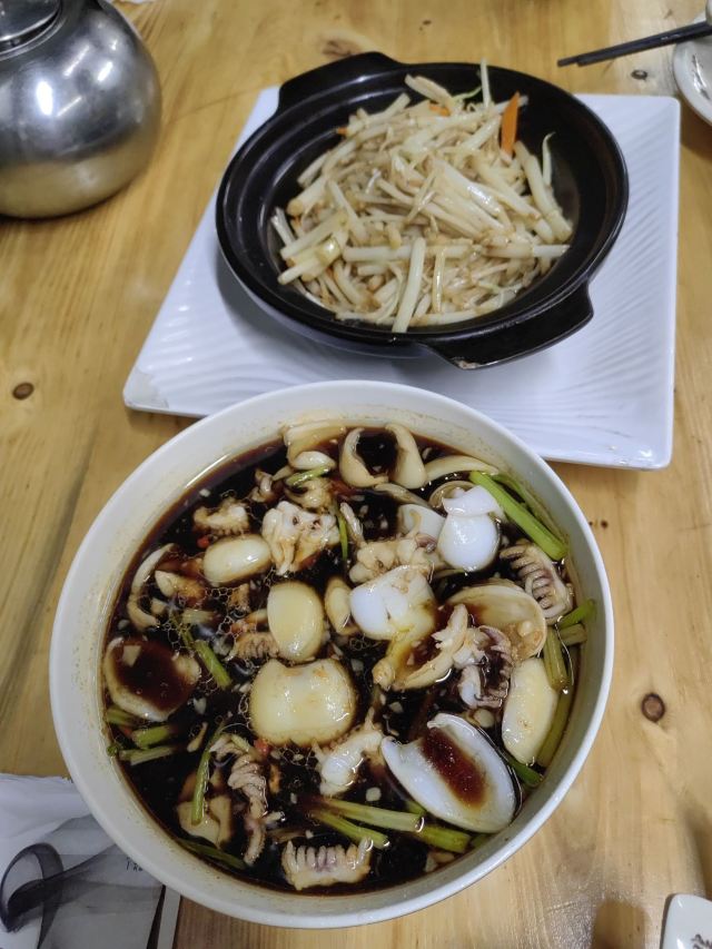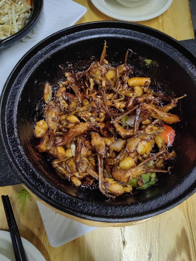 鸭舌田鸡嘟嘟煲,抽炝腰花,蛋黄对虾,抽炝墨鱼仔,溧阳白芹,金陵双臭,干丝,生炝墨鱼仔,肉夹饼,臭鲑鱼,肥肠臭豆腐,蛋黄焗对虾,抽炝芦蒿