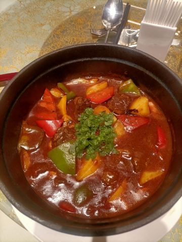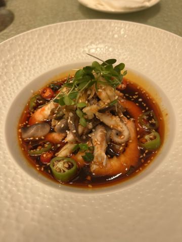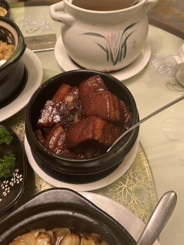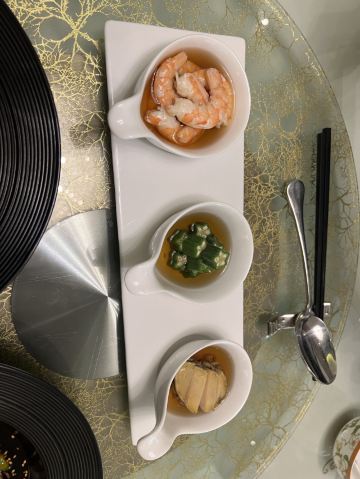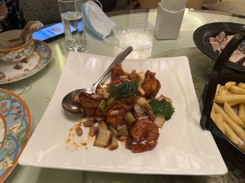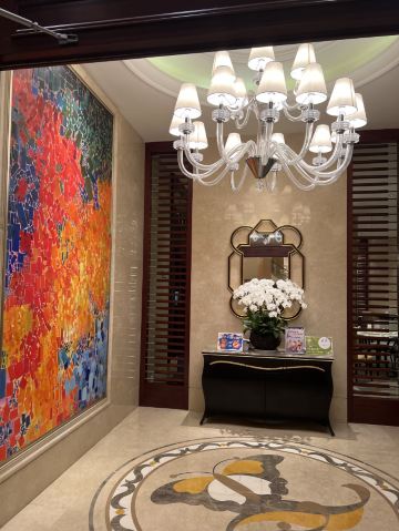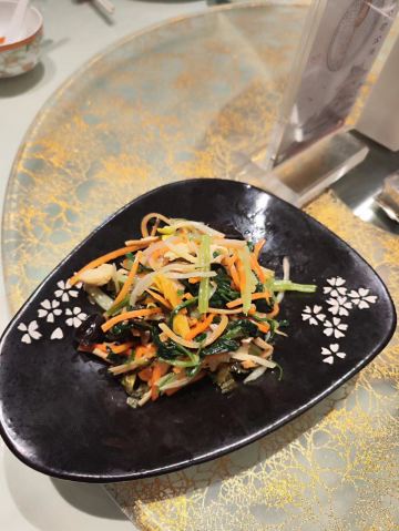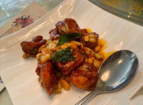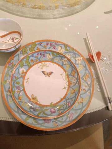 【口味】菜肴美味可口,宫保虾球酸甜微辣,虾仁大而Q弹、百合颗粒饱满,软糯香甜完全没有苦味、牛排口感软润简直大爱。 【环境】装修典雅、沙发座很舒适,餐厅蝴蝶元素随处可见。门口的蝴蝶兰生机勃勃,应情应景。 【服务】服务人员亲切友好,对我们老人小孩关爱子倍至。