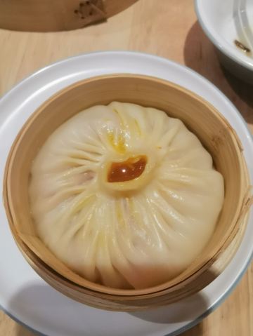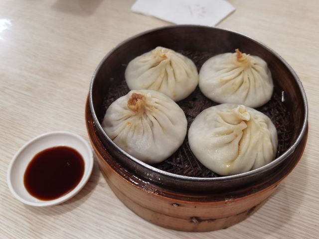 小李汤包:在小巷子里的汤包店,接地气的老旧街坊店铺,门口都摆放了几盘蒸熟的蟹,蟹黄汤包是这里的主推,现场制作,现蒸现卖,每笼4只22元。要了一笼蟹黄汤包和鸭血粉丝汤。蟹黄汤包热乎乎的,一口咬下去很多汤汁,汤汁也比较鲜甜,不过没吃出有太大蟹黄的味道,包皮相对不够薄滑。鸭血粉丝汤的料挺多的,味道尚可。