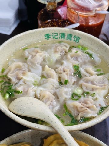 目的地不明确🥟 牛肉锅贴:外酥里嫩,汁水四溢 首先登场的是李记的招牌牛肉锅贴。刚出锅的锅贴金黄酥脆,底部被煎得恰到好处,既保留了面皮的韧性,又增添了几分香脆。轻轻咬开,牛肉的鲜香瞬间在口中绽放,肉质鲜嫩多汁,与面皮的香脆形成鲜明对比,让人回味无穷。每一口都能感受到牛肉的细腻与锅贴的香脆完美融合,简直是一场味蕾的盛宴。 🥣 牛肉馄饨:汤鲜味美,肉质细腻 紧接着,一碗热气腾腾的牛肉馄饨端上了桌。馄饨皮薄馅大,牛肉馅料经过精心调制,肉质细腻且富有弹性。汤底清澈而鲜美,轻轻一口,便能感受到牛肉的醇厚与汤汁的甘甜在口中交织。搭配上一碟香醋,更是提升了整道菜的口感层次,让人欲罢不能。