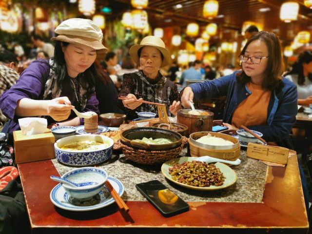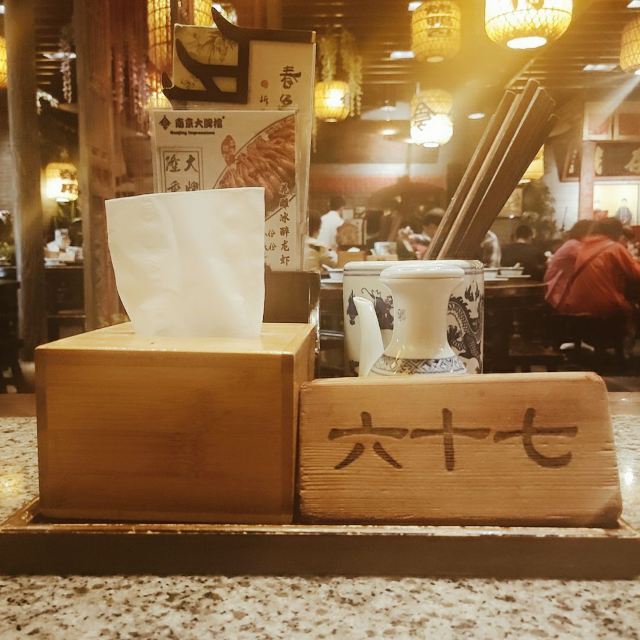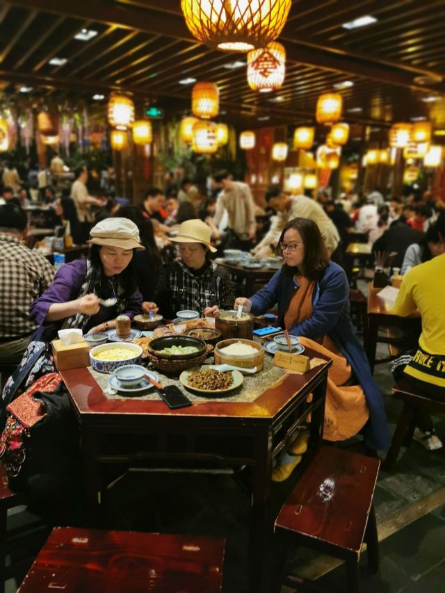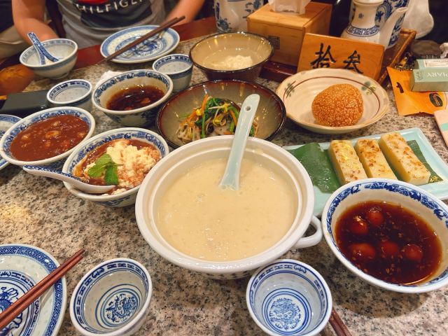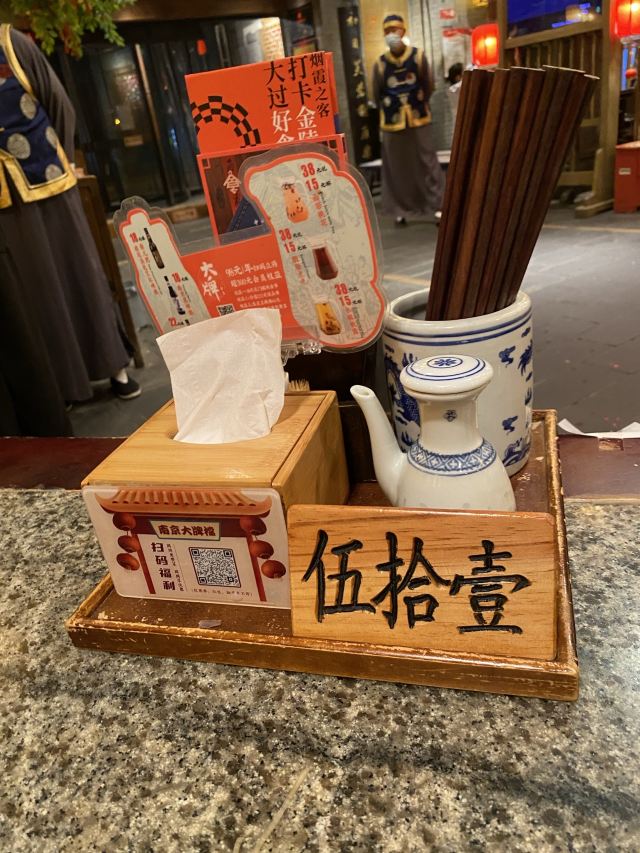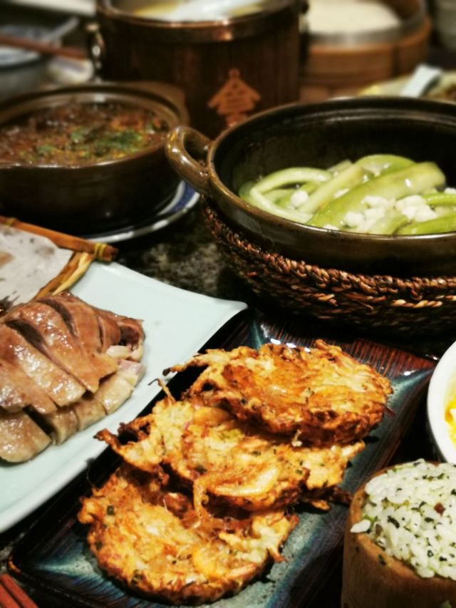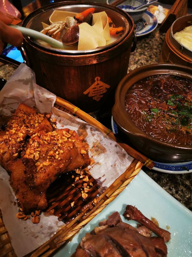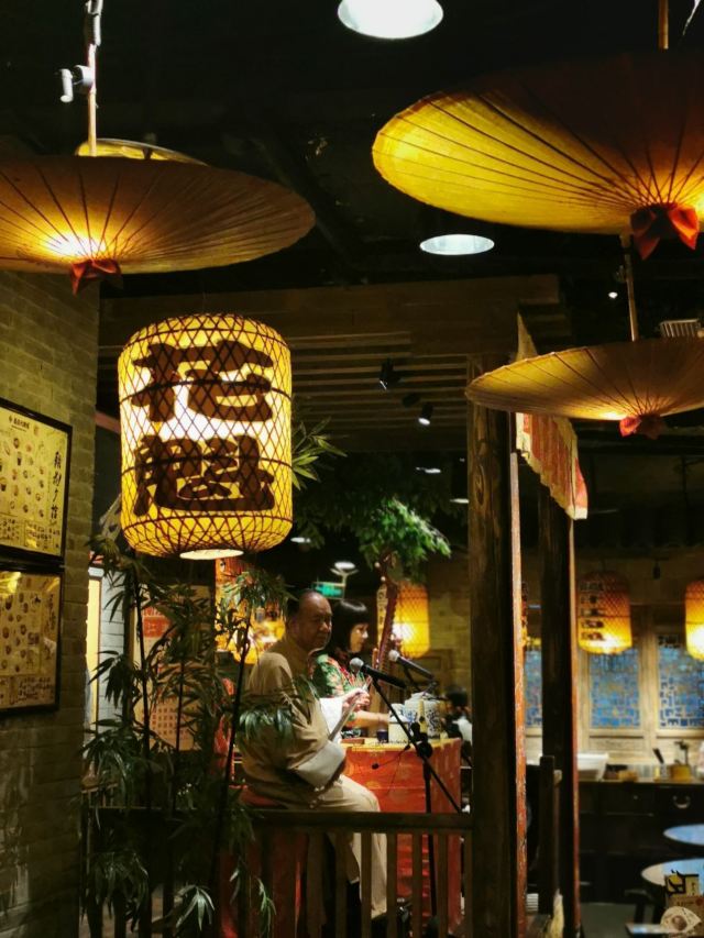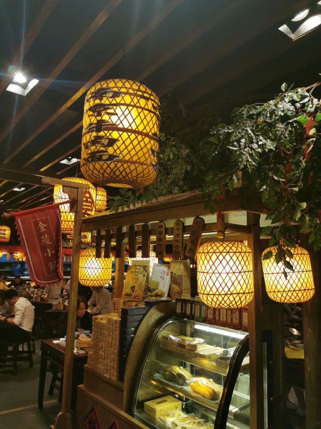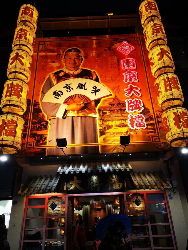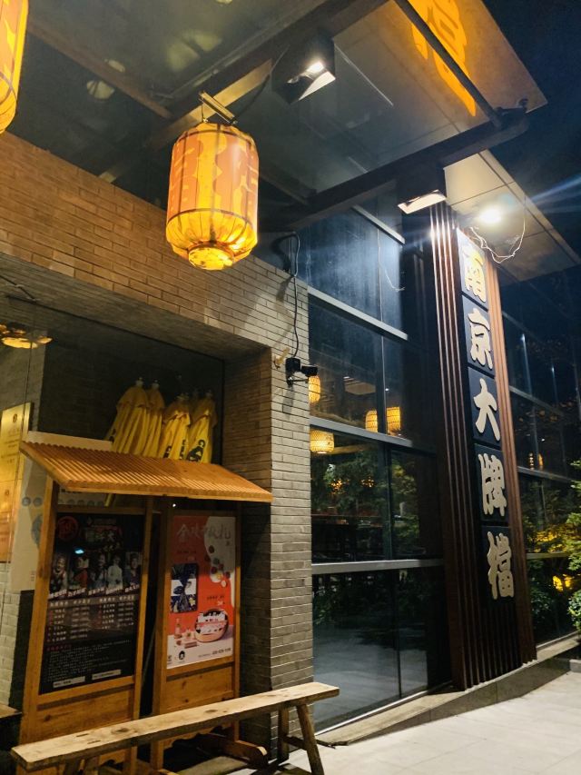南京大牌档始创于1994年,现在在全国各地都有分店,这家位于钟山(紫金山)脚下,离明孝陵的梅花山比较近,是游玩钟山风景区的游客常选择的餐厅,在此可一站式吃遍南京名点,他家下午不休息,是连续营业的。 中山陵店的外观更为现代化,但是店内和其他南京大牌档一样,再现了清末民初的茶楼酒肆旧貌,摆着八仙桌,挂着许多灯笼,有时有传统曲艺表演。店内的服务员都穿着民国服饰,进门就有服务员喊迎送宾客的吉祥语。糖芋苗、烤鸭包、狮子头上桌率很高,民国美龄粥用豆浆和粥做成,口感独特,王府泡椒鸡辣味不明显,酸酸甜甜适合南方人的胃口。