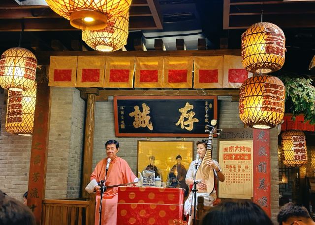 Nanjing Impressions (Zhongshanling)南京大排档中山陵店具有以下特色: - 装修风格:店内复古装修,再现了清末民初的茶楼酒肆旧貌,摆着八仙桌,挂着许多灯笼,营造出浓浓的客栈味道。 - 位置便利:位于江苏省南京市玄武区中山门大街 9 号紫金文化广场 F1,距离 2 号线苜蓿园站 1 口较近,交通便利。 - 菜品丰富:作为一家以经营南京地方风味菜肴为主的中式餐饮企业,提供多种地道的南京小吃和特色菜肴。 - 文化体验:店内有时会有传统曲艺表演,让顾客在用餐的同时感受南京的传统文化。 如果你想了解更多关于南京大排档中山陵店的信息,或有其他需求,欢迎继续向我提问。