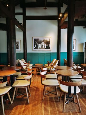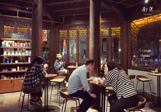 到了老门东肯定要来星巴克,即便不爱喝星巴克就为了它的特别也要来一回。早上来的话就可以随意拍拍拍了。复古的风格,踩着咯吱咯吱的地板声走到二楼,能看到木制工艺的精致雕花,整个环境还是比较舒适的。咖啡味道么也就不做评论了。