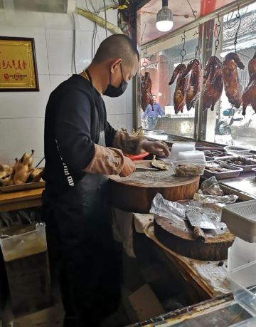 看似破旧普通的店实际实际上也是网红店。 位置不太好找,地址是饮马巷100号,从中山南路进来一点点就到了,附近不好停车。 油鸡口感介于白斩鸡和盐焗鸡之间,不像白斩鸡那样还带着血,也不像盐焗鸡那么韧劲。淋上一些鸡汁确实味道不错。 盐水鸭做的也很好地道,其他比如卤蛋也不错。
