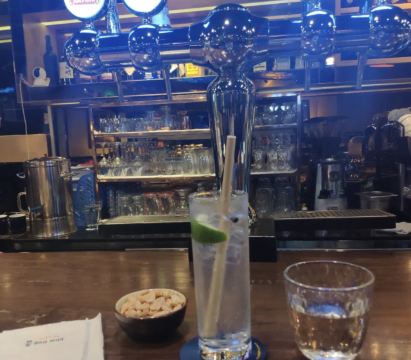 这家餐厅是一家很精致的店,精致的不仅是它的菜品还有它难得的就餐环境,幽暗的灯光下很适合聊天。菜的做法很美式,汉堡摩天轮一个顶俩,肉饼多汁够夯,分量十足,这款性价比很高,相当于两个汉堡啦,分食刚好。