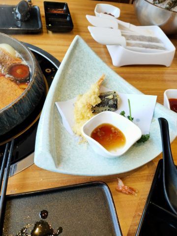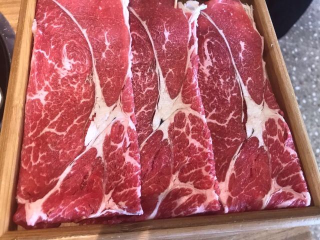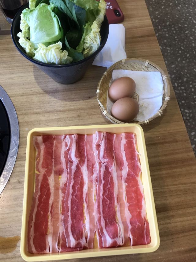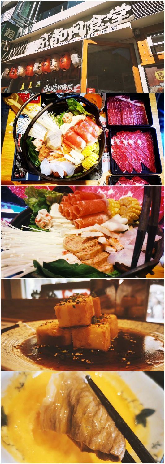 寿喜锅,霜降牛肉,虾滑,天妇罗炸虾,美国精选雪花自然牛肉,焦糖烤布蕾,音乐鸡蛋,抹茶冰淇淋,雪花自然牛,生牛肉刺身,抹茶甜筒,无菌鸡蛋,可尔必思,自制鲜虾滑,蒜蓉粉丝蒸扇贝,三文鱼,焦糖布丁