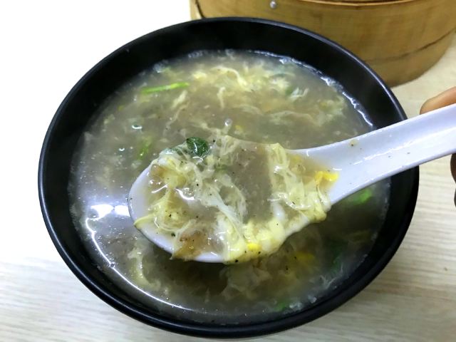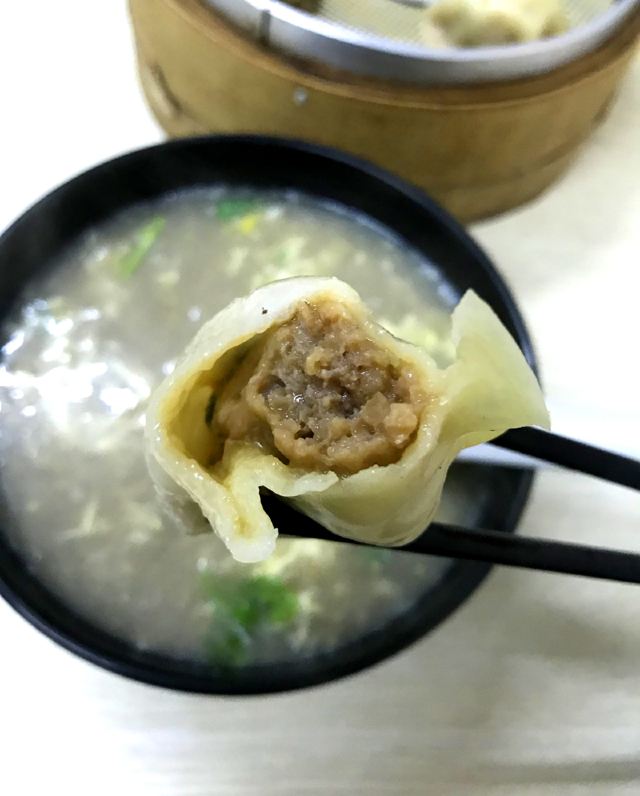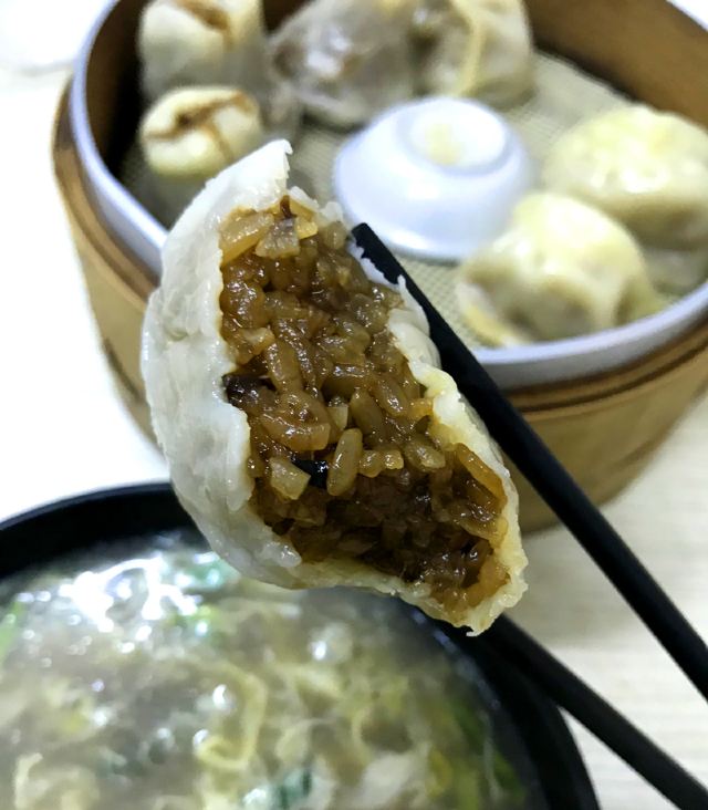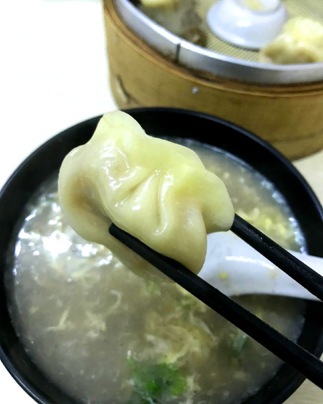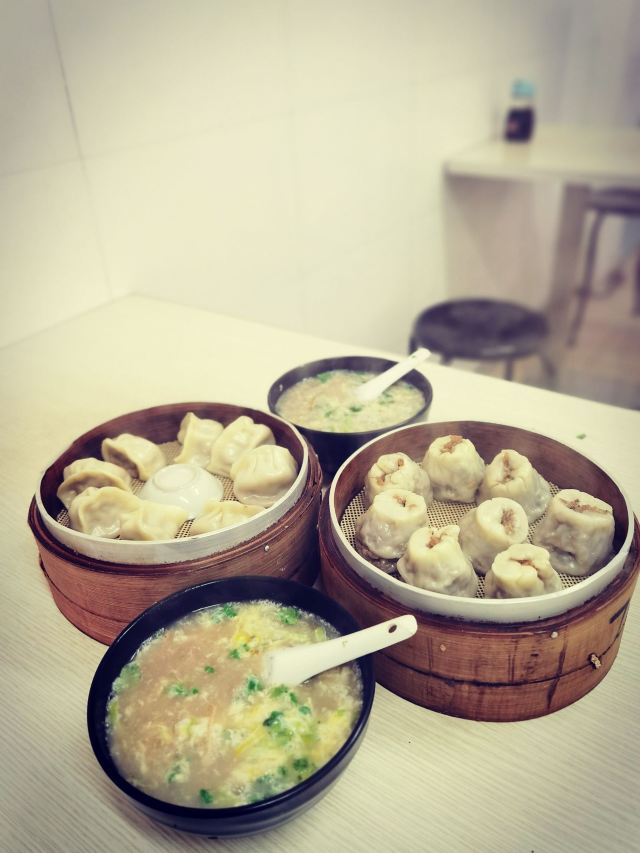 【位置】 门口小街路边可以临停一下,不是划线车位哦。 【环境】 干净整洁的小店。 朋友住附近,说开了好多年,以前还是路边小摊。 【服务】 有冷冻的蒸饺、烧卖,可以打包带回家。 【食物】 sa汤,6元(小碗),鸡汤里有麦仁、蛋花,浓稠适中,味道不错。 蒸饺,14一笼8只,馅鲜甜多汁,要趁热吃,凉了皮有点硬。 烧卖,14一笼8只,口味还不错,卖相一般。