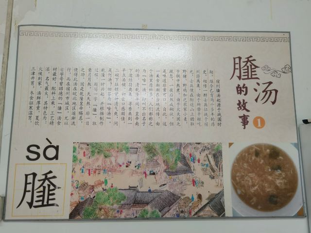 110****121一直想来尝尝,老板只营业到中午就下班了,这次路过刚好看着开门赶紧进来买个新鲜。 Sa汤:其实就是徐州的那种类似胡辣汤的口感,说是底汤用老母鸡调的,但我真没吃出来鸡汤的味道[笑哭](老板别生气),碗里磕一个打散的蛋花,加上用白胡椒、黑胡椒、八角、花椒、香叶桂皮白芷及适量面粉打磨成细细的粉末,取适量倒在碗里,滚汤这么一浇就是SA汤了,嘿嘿。其实这种汤一年四季都很合适,主要里面有很多香料,冬天可以袪湿气,夏天可以促汗,排出毒素,所以自己家也是可以做的。 包子和烧麦:这个我感觉倒是比Sa汤要出彩很多,里面放了浓浓的黑胡椒粉,所以很好的去除了肉的腥味,反而增香不少,尤其是烧麦,糯糯辣辣的口感很是开胃。 店面不大,收拾得还算干净,一个人小碗就可以了,Sa汤的口味一般,蒸品倒是不错,可以尝尝。