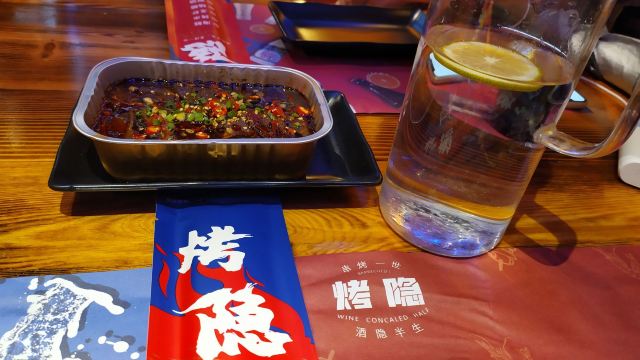 下午五点到1912,就在路边,这个点居然每桌都有人,幸好预约了。酒吧外面的座位很有情调。音乐很舒缓,属于清吧。套餐里的蒜泥龙虾上桌晚一点,口味偏甜,拌上劲道十足的凉面,非常好吃。烤鸭血比较特别,偏辣。黄瓜脆脆的,三人都觉得很赞。烤活虾的虾又大又新鲜,烤羊肉串和金针菇火腿肠就一般般了。分量不太多,但三个女生吃也够了,毕竟是晚餐。服务很周到,多一人也没收餐位费,柠檬水可以随意添加。