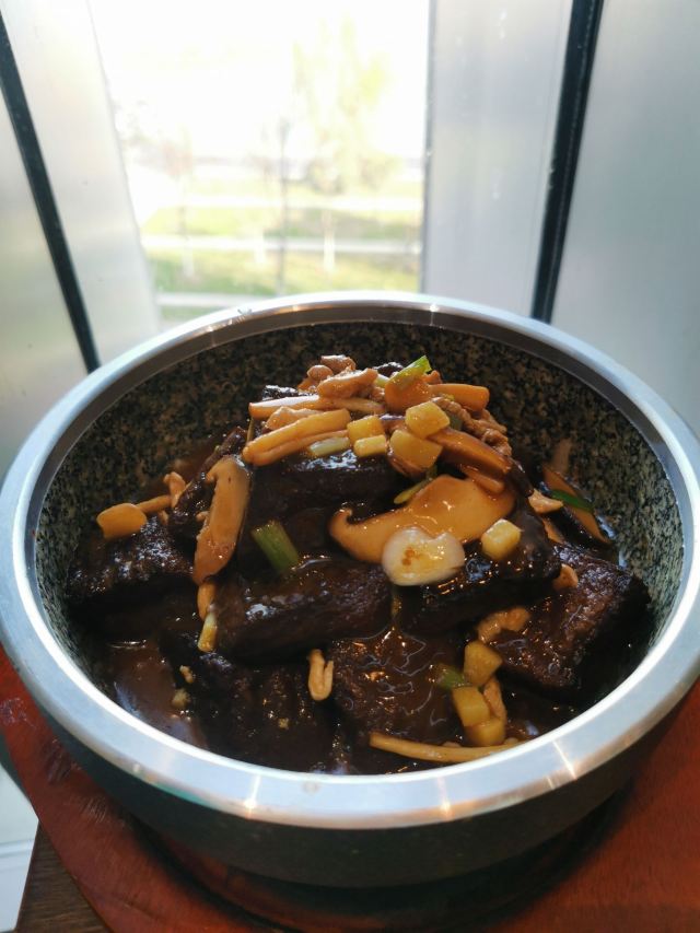 【位置】 在湖边的A2号楼湖滨天地的4楼,有地下停车场,目前免费。 【环境】 可以俯瞰九龙湖,边用餐边赏景。 【服务】 橙V福利,无需预约,直接到店。 服务不错,店员很客气。 【食物】 特色黄焖三丝盅,鲜美,拌饭好吃。 石锅黑豆腐,滚烫的石锅保持了菜的温度,口味不错。 香煎三文鱼头,香嫩入味。 整个套餐,搭配合理,两个人正好。