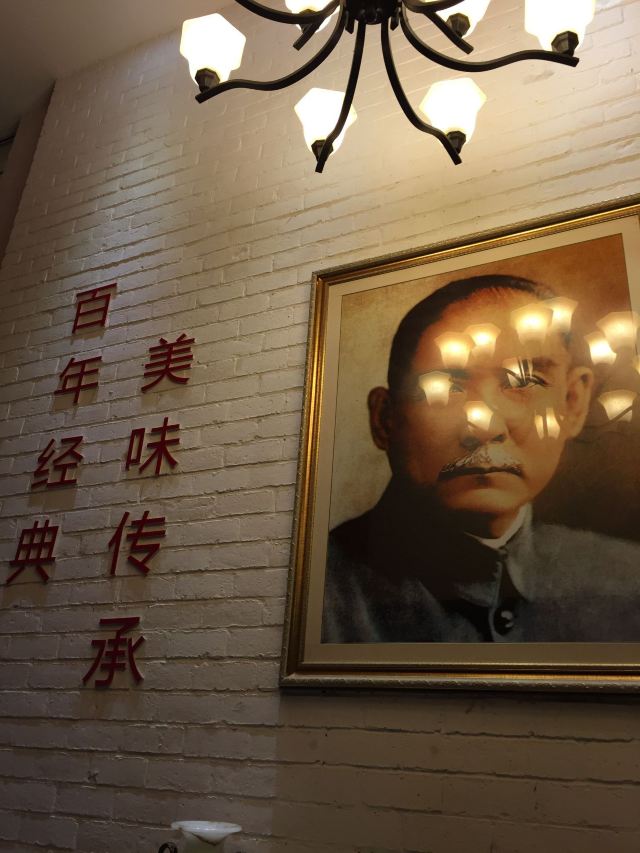 迪迪猫据说是当年蒋公携夫人曾光临过的一家店。 位置绝佳,就在总统府旁边。 服务员一水的民国风情的服饰。 菜品做得还是不错的。有几样主打菜的上菜时间太长,很遗憾没有品尝到。 |太白长江虾^将熟的江虾用黄酒浸泡,吃出些许醉虾的感觉。 |金陵盐水鸭^作为南京的一道特色菜,基本满足了我到南京,怎能不吃盐水鸭的要求,鸭子肉质较嫩,口感适中,不腻。 |鲥鱼之思^鱼不去鳞,剖开后半条上桌,加以酒糟。虽有些吃不惯,但鱼本身的鲜味还是可以品尝得到。 |牛肉粒^本想吃红烧肉或是塔肉,但是上菜时间太长,只好选了这道菜。初入口时,还觉得口味不错,等菜品稍凉一些,就感觉有些平淡无奇了。 |黑松露汤包^做得好,皮薄,馅大。说实话,有些吃瞎了,没有吃出黑松露的滋味来。