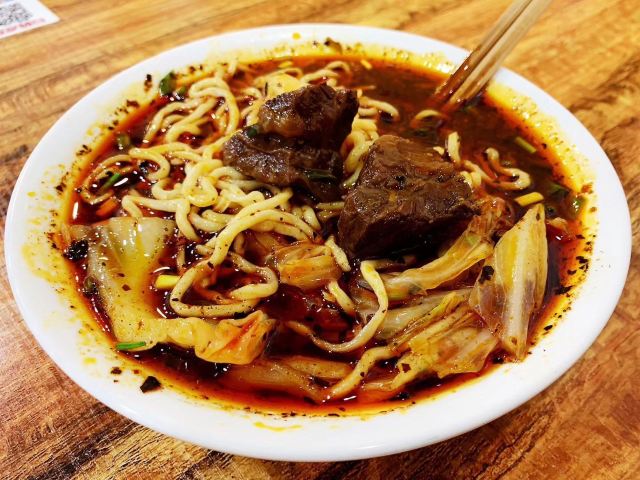 牛肉倒是大坨,但是汤底和调味简直和重庆小面差距太大,看来业余和专业的区别还是相差甚远。 2两23块,两大坨牛肉,素菜就是使用的包包白菜,可能名字也因此而来。谈不上好吃,也不会难吃,感觉和成都普通面馆差不多。