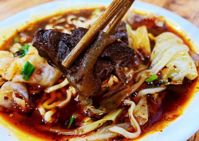 旅游度假牛肉倒是大坨,但是汤底和调味简直和重庆小面差距太大,看来业余和专业的区别还是相差甚远。 2两23块,两大坨牛肉,素菜就是使用的包包白菜,可能名字也因此而来。谈不上好吃,也不会难吃,感觉和成都普通面馆差不多。