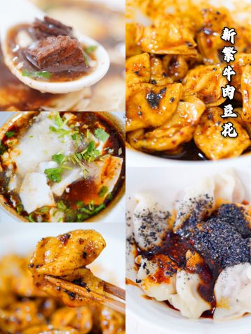 黑芝麻水饺,豆瓣抄手,醉豆花,红油水饺,红烧牛肉面,红油抄手,干拌面,新繁牛肉豆花,黑芝麻,牛肉火锅粉,甜豆花,豆花儿,牛肉汤,黑米粥