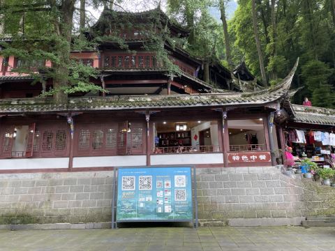 来青城山休闲游,在青城山建福宫旁边的道青源餐厅就餐,吃青城山三绝之一的白果炖鸡,128元一份,再点素菜。 【口味】川味,青城山三绝食品, 【环境】就在建福宫建筑内,依山而建。